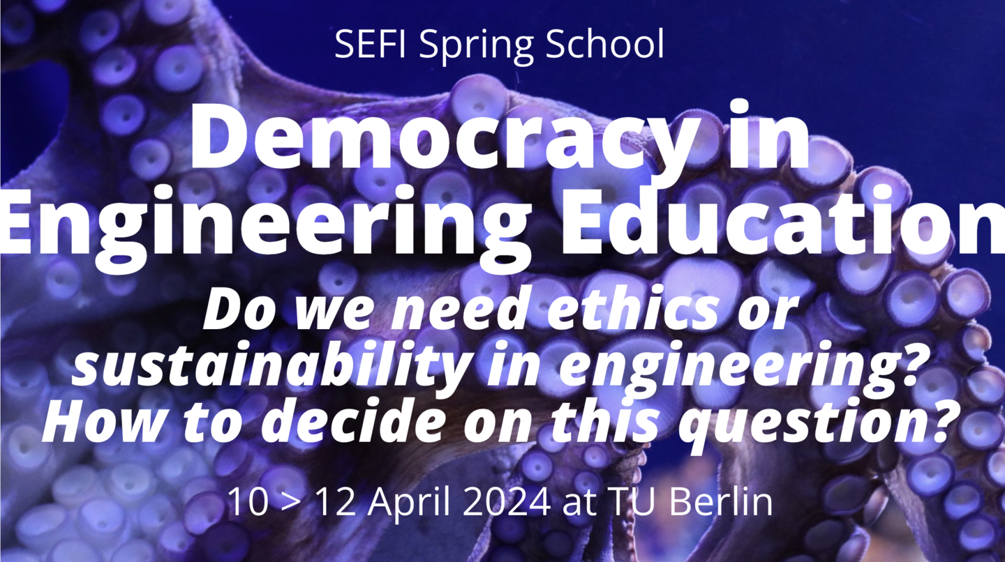 From April 10 to 12, 2024, the SEFI Spring School on Democracy in Engineering Education took place at the Technical University of Berlin. The Spring School was organized for the first time jointly by the two SEFI Special Interest Groups for Ethics and Sustainability and addressed the provocative key question: “Do we need ethics or sustainability in engineering education – and how do we make this decision?” Inspired by the children's book “Kroko oder Krake? Du musst dich entscheiden!” (Crocodile or Octopus? You Have to Decide!), the event playfully yet seriously addressed the issues of freedom of choice, responsibility, and participation in technical education. One of the Blue Engineering lecturers actively participated, exchanged ideas with the participants, and contributed perspectives from the Berlin seminar.